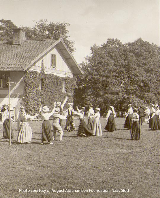 In the summer of 1904, Grace McMillan, an Australian-born education specialist then living in Scotland, was selected to go to Sweden for a teacher-training program called Lekkursen in songs, dances, and games for young children at Sweden's renowned Nääs Slott & Slöjdseminarium (Nääs Castle and School of Crafts). Miss McMillan's book Swedish Recreative Exercises for School & Playground was a result of what she had learned in that program. This book was adopted in both the UK and the USA at the forefront of the educational folk dance movement for physical training and organised play.